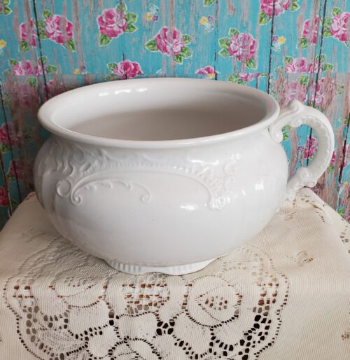 Experience the grandeur of the Victorian era with our ornate white vintage chamber pot – a beautiful embodiment of the style and grace that defined that period. Made from premium ironstone, this chamber pot features an eye-catching, ornate design that radiates elegance. Elevate your living space with this exquisite piece that seamlessly combines functionality with vintage sophistication and Victorian charm.