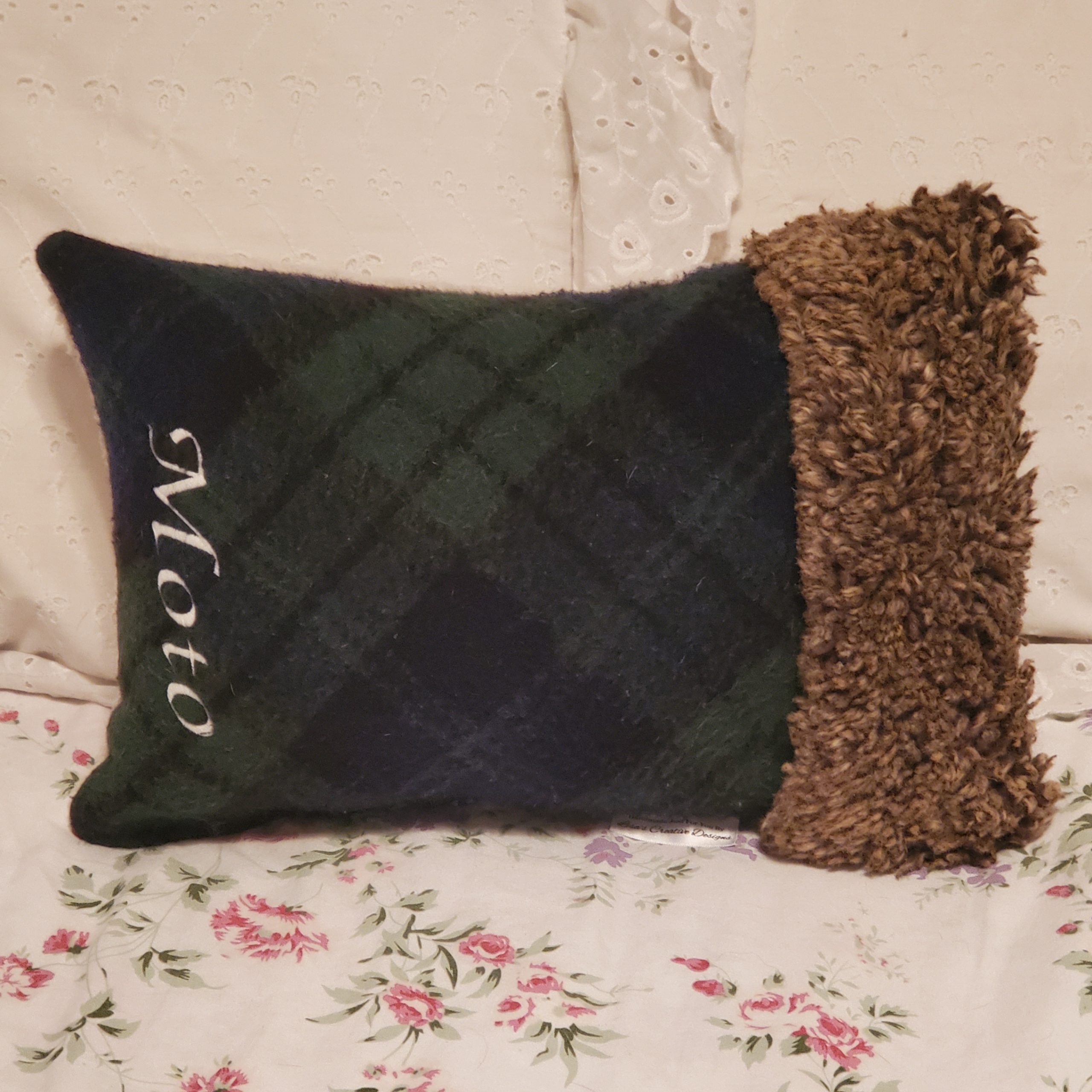• PATCHWORK DESIGN~ Pillow made with a patchwork design using more than ONE piece of fabric. Design can be up to 9 different pieces of fabric on the front. I have done pillows with 3 or 4 pieces as well. The back will be a solid piece of fabric or two different pieces. Optional personalized patches with or without photo are included in this design.